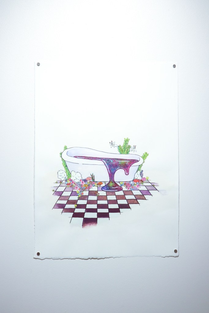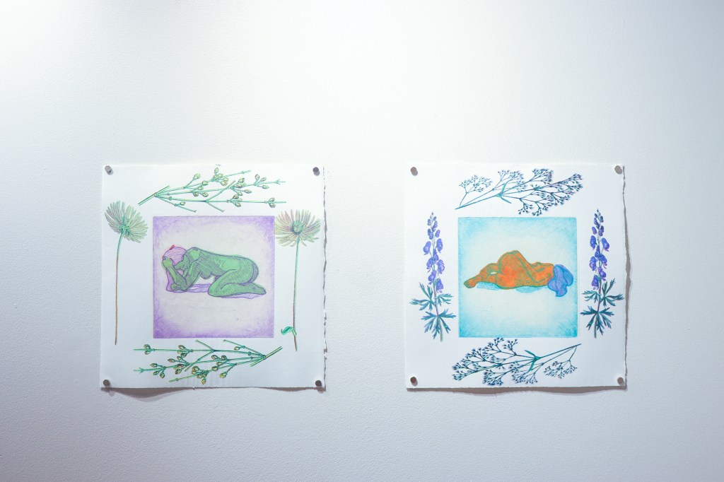 Selected Works 2018-2019 “Paramnesia I” Watercolor, gouache, ink, PVA glue, glitter on hot press paper. 2018.“Prostrate” and “Supine” Intaglio with chine-collé and screen prints on BFK. 2018.“Nausea” Screen print. 2018. Share this: Share on X (Opens in new window) X Share on Facebook (Opens in new window) Facebook Like Loading...